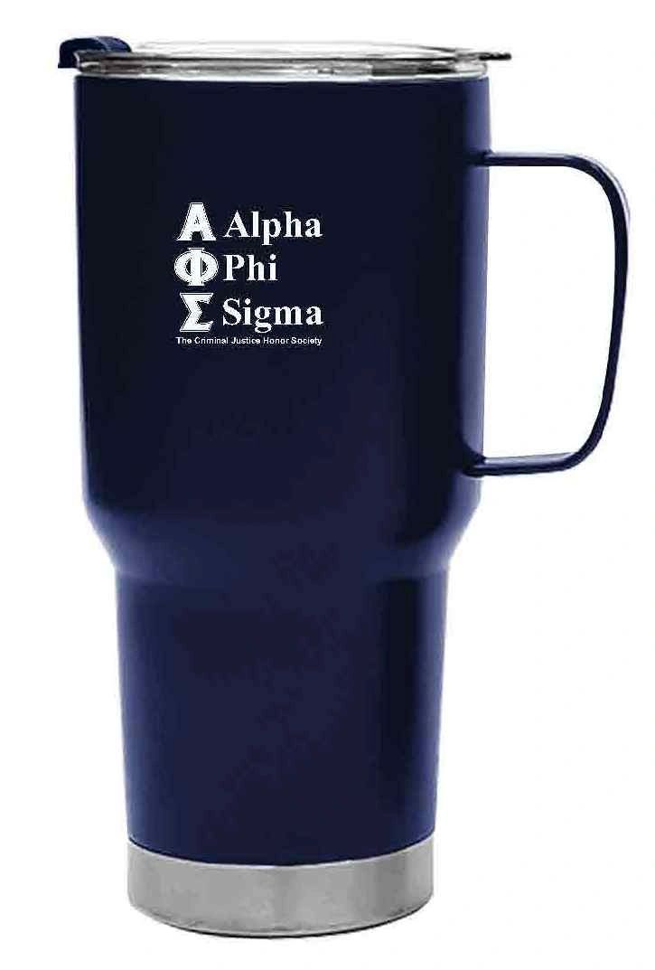 20 Oz. Fulton Stainless Steel Travel Mug Color: Navy blue with white lettering You can now take your APS pride on the go with this handsome, stainless steel travel mug! Features: Stainless Steel Outer And Inner Stainless Steel Tumbler With Handle Double Wall Construction For Insulation Of Hot Or Cold Liquids Vacuum Insulated Snap-On, Spill-Resistant Flip Top Lid with Straw Hole Meets FDA Requirements BPA Free Hand Wash Recommended