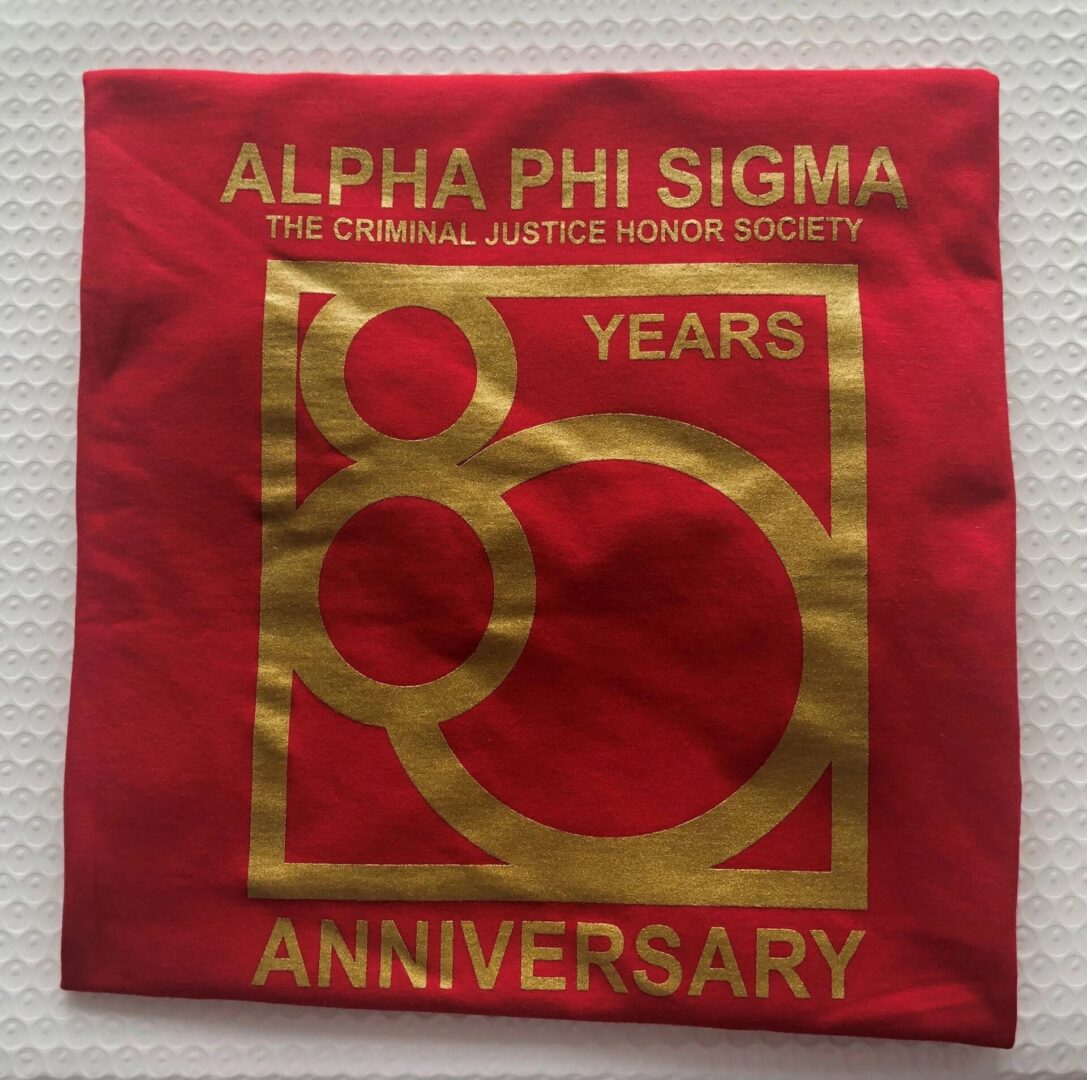 Alpha Phi Sigma 80th Anniversary T-Shirt Color: Cherry Red with metallic gold lettering CELEBRATING 80 YEARS OF ACADEMIC EXCELLANCE, COMMUNITY SERVICE, EDUCATIONAL LEADERSHIP AND UNITY WITH STYLE! Fabric: 4.5 oz./sqyd, 30/1 100% ring spun cotton Ultra-smooth enzyme washed fabric High stitch density for smoother printing surface Feature: 5/8″ seamed collar Taped neck and shoulders Tear-away label Double-needle sleeve and bottom hems Quarter-turned to eliminate center crease Modern-classic fit Deco Eligible